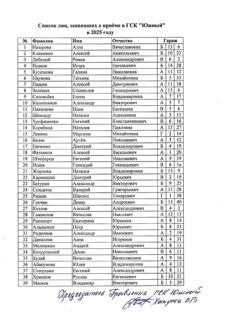 Утверждён общим собранием членов ГСК 27.06.2020 г., подтверждён Протоколом №1 общего собрания членов ГСК от 22.05.2022 г.